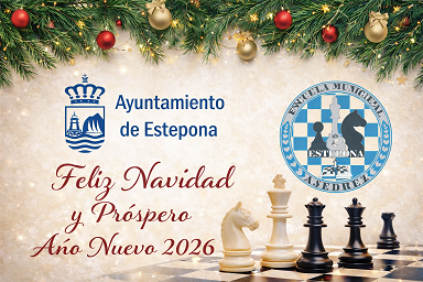 El ILMO. AYUNTAMIENTO DE ESTEPONA, la CONCEJALÍA DE DEPORTES DE ESTEPONA, CONCEJALÍA DE CULTURA DE ESTEPONA junto a la ESCUELA MUNICIPAL DE AJEDREZ DE ESTEPONA, organizan en la semana del Viernes 13 de Diciembre del 2.024 hasta el Jueves 19 de Diciembre del 2.024 en la Escuela Municipal de Ajedrez de Estepona y Cancelada los “Torneos de Navidad de la Escuela Municipal de Ajedrez de Estepona” para las distintas edades, así como el viernes 13 de Diciembre del 2.024 en la Escuela Municipal de Estepona comenzará el torneo Seniors, a las 11 horas, seguido del Lunes 16 de Diciembre del 2.024 los torneos Sub08 y pitufos a las 16.30 h, y el Torneo Sub10 el Martes 17 de Diciembre a las 17.30 horas, el Miércoles 18 de Diciembre a las 17.00 horas en Cancelada, finalizando el Jueves 19 de Diciembre del 2.024 los torneos Sub12, Sub14, Sub16 y Mayores a las 17.30 horas.