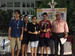 Fantástica noche de Ajedrez en el Paseo Marítimo con una participación de 184 jugadores y muchísimo publico que consiguieron una imagen espectacular con el mar a pocos metros, 12 Esteponeros recibieron trofeos los campeones fueron: SUB-7 XIAOPENG XIA, SUB-8 JAVIER LOZANO, SUB-10 ILYA SUKANOV, SUB-12 SIAN ARJAN, MAYORES SALVADOR CONDE, FEDERADOS: SUB-10 ENRIQUE TOSUN, SUB-12 GERMAN MALDONADO, SUB-14 DANIEL GUTIERREZ, SUB-16 ALEJANDRO MERCADO, MAYORES JESÚS GOMEZ.