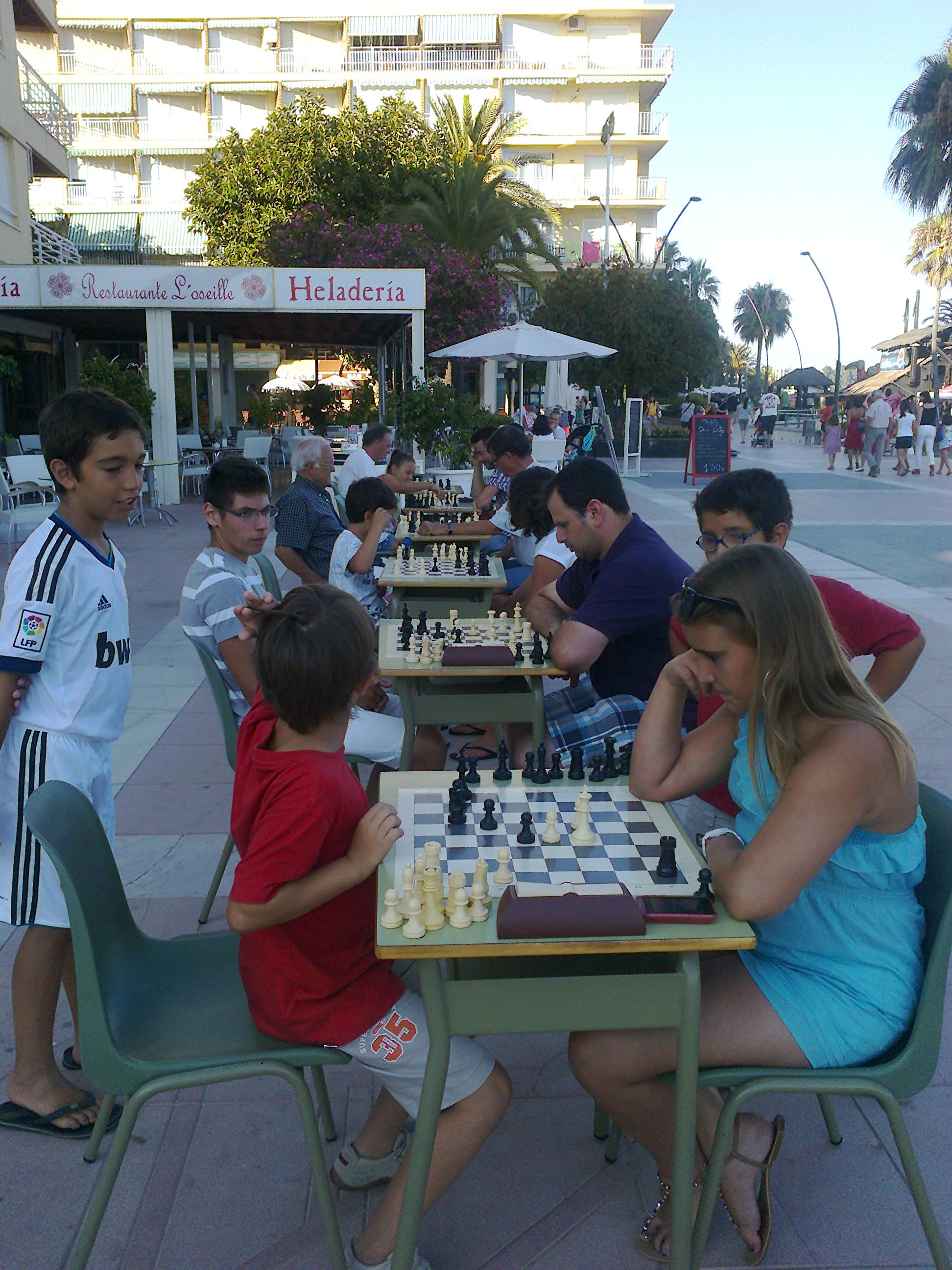 AJEDREZ VERANO 2013:Exito importante en las tardes-noches de verano , durante los meses de julio y agosto hemos llevado el ajedrez al paseo maritimo con gran afuencia de jugadores y publico que admiraban las partidas que se jugaban, jugadores de todas las edades, veraneantes etc..